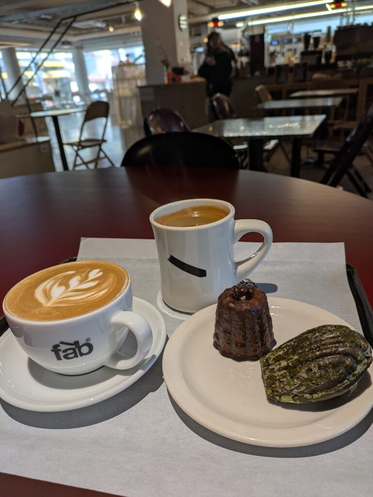 コーヒーとカヌレと抹茶フレーバーのマドレーヌをいただきました。
