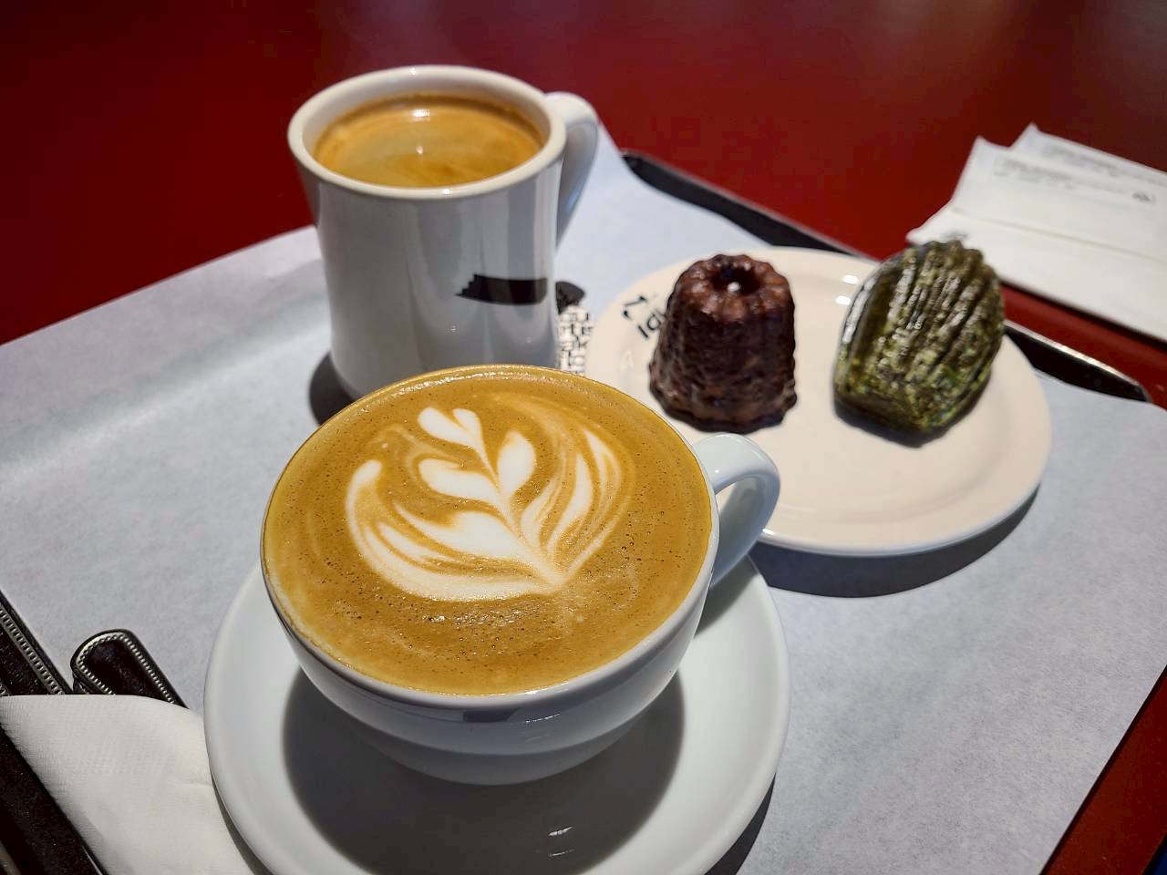 コーヒーとカヌレと抹茶フレーバーのマドレーヌをいただきました。