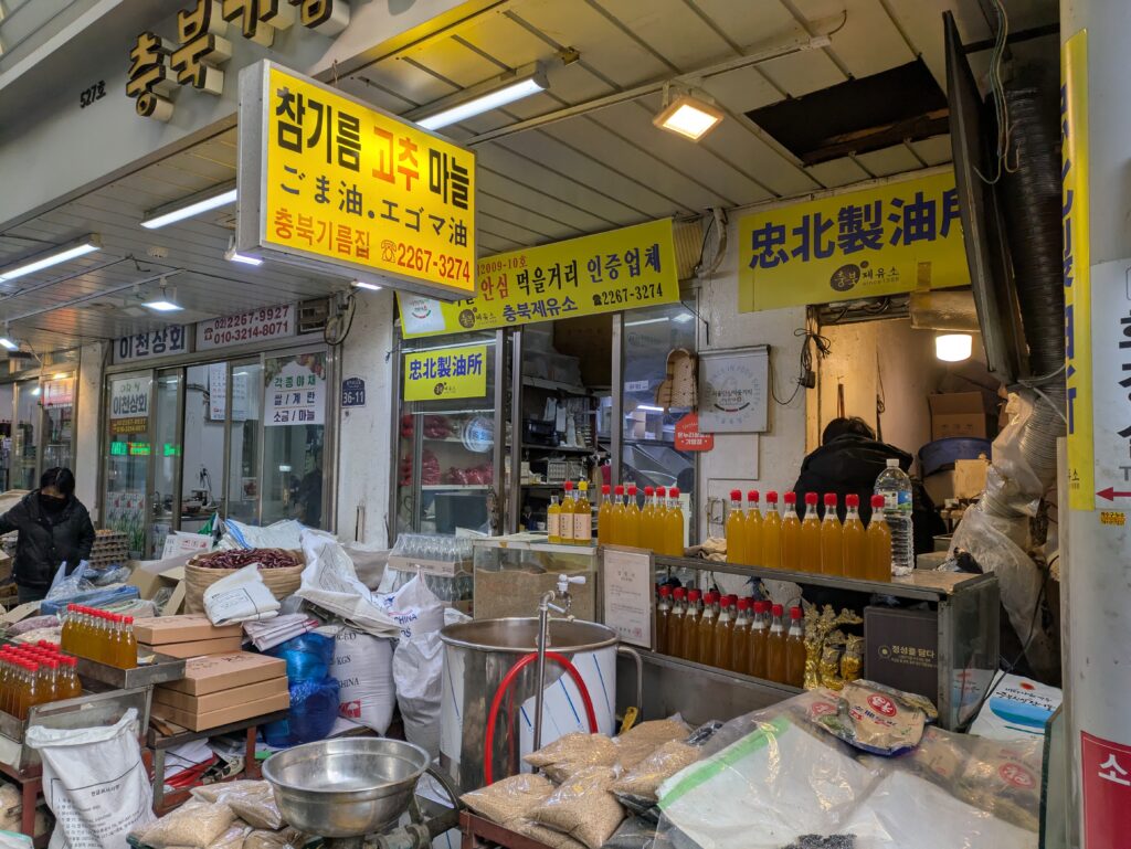まずはこのエリアで有名な忠北製油所でごま油を買います。