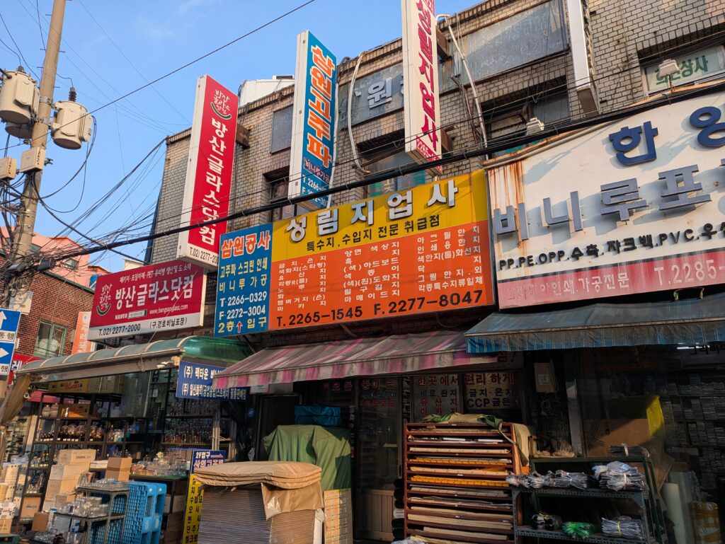 煌びやかな明洞の街並みから少し歩くだけで昔ながらの印刷所が並ぶ路地に景色が変わりリアル韓国を感じてわくわく。