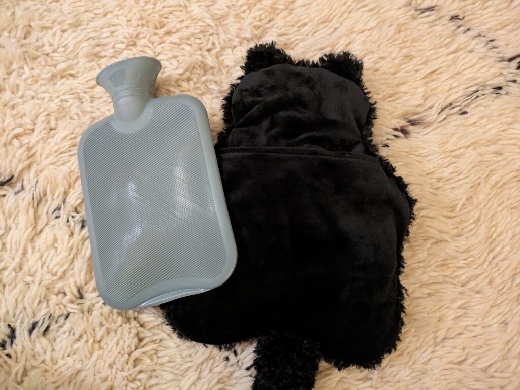 かわいい・・・黒猫の湯たんぽカバーの中に湯たんぽが入っていてお湯を入れて使います。