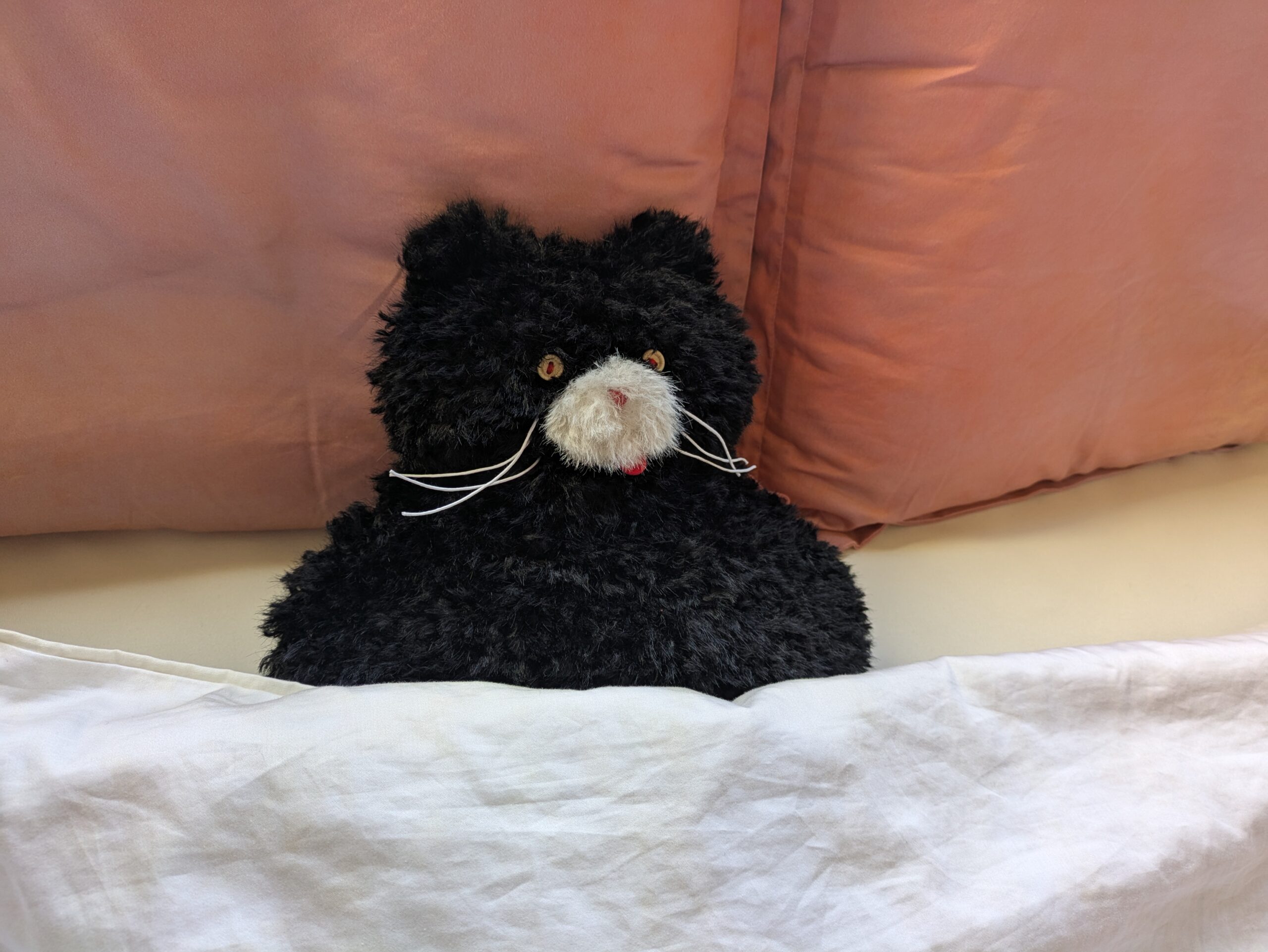 かわいい・・・黒猫の湯たんぽカバーの中に湯たんぽが入っていてお湯を入れて使います。